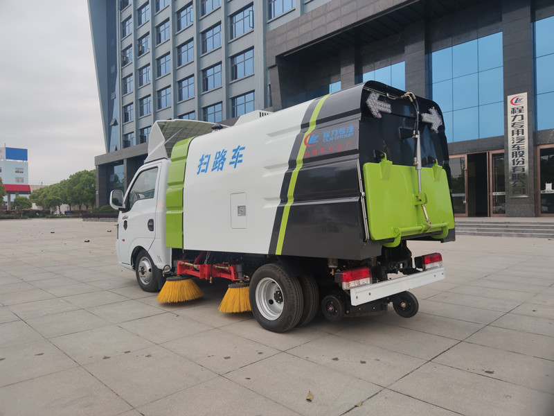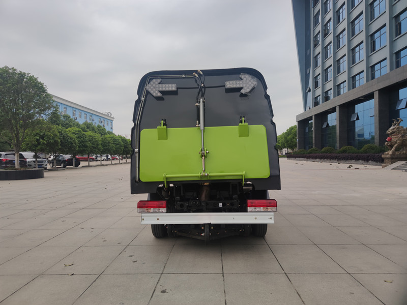 带4个扫盘、小康39KW副发动机、三洋马达、施耐德控制开关、海普瑞斯电磁阀组、无级变速自动离合器、免维护离心式自动风机、不锈钢垃圾箱、上海新西山电子水泵,尾部LED箭头指示灯、手动泵应急系统、垃圾举升自卸功能。