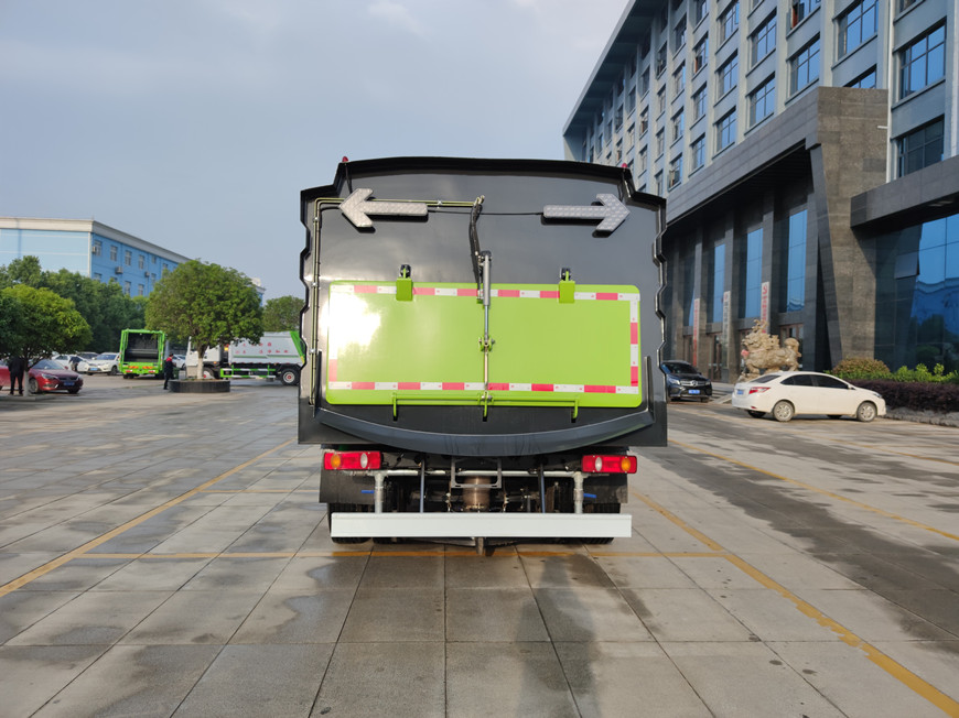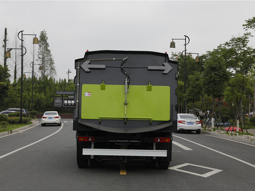 带4个扫盘、康明斯140马力副发动机、三洋马达、法国施耐德控制开关、海普瑞斯电磁阀组、无级变速自动离合器、免维护离心式自动风机、不锈钢垃圾箱、尾部LED箭头指示灯、手动泵应急系统、垃圾举升自卸功能。