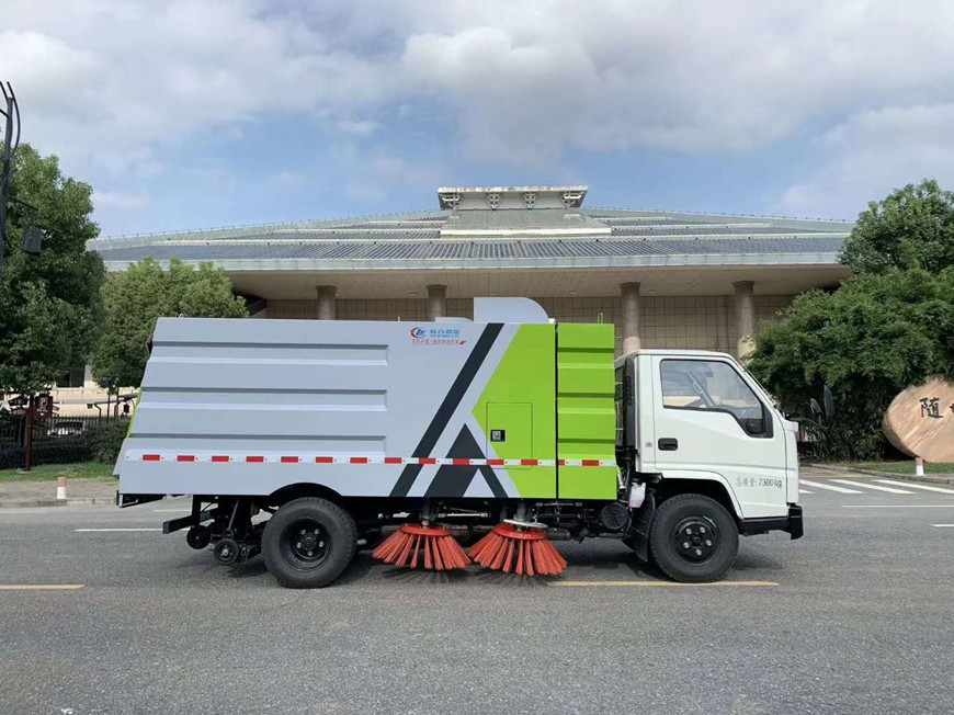 带4个扫盘、江铃87马力副发动机、三洋马达、施耐德控制开关、海普瑞斯电磁阀组、无级变速自动离合器、免维护离心式自动风机、不锈钢垃圾箱、中联北极星电子水泵,尾部LED箭头指示灯、手动泵应急系统、垃圾举升自卸功能。