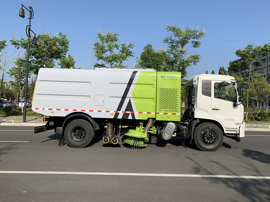 采用“中置两立扫+真空吸尘罩+中置宽吸嘴+左右四吸尘管”的布置方式。大扫刷设计,可清除道路台阶死角垃圾,吸嘴能随地面状况自动找平,清扫能力大,清扫速度快。