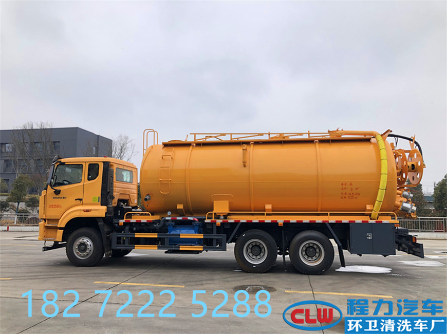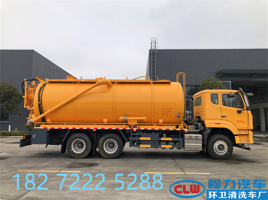 【上装配置】1. 罐体总容积约24立方米(水罐污罐容积可自由分配),采用武钢优质钢板制作,壁厚8个厚,罐体中间合理设计防浪板,污罐内衬蝶形封头(带加强筋)